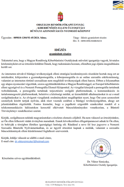 Egy nem túl bőbeszédű emailben érkezik a rendőrség nevében idézés.