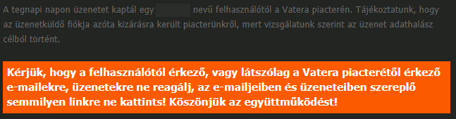 Erre egyébként maga a Vatera is figyelmeztet, de sajnos ez is utólag történik meg, így egy kevésbé óvatos felhasználó esetén a baj már megtörtént azóta.